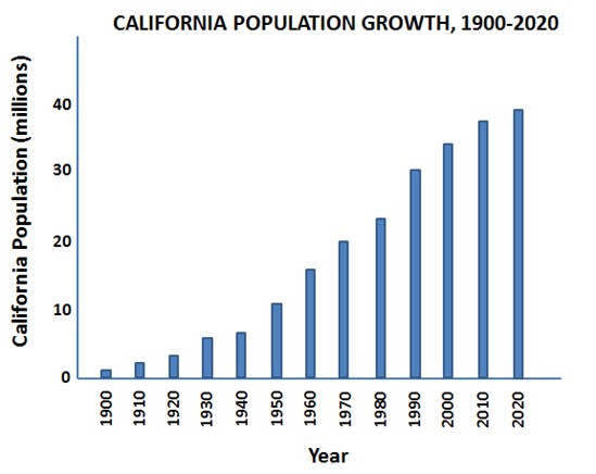 Unfortunately, both our prediction and the warnings of many others went unheeded by our political leaders. California, already at a staggering 34 million in 2000, grew by another three million to hit 37 million in 2010, and by still another 2.5 million to reach 39.5 million by 2020.